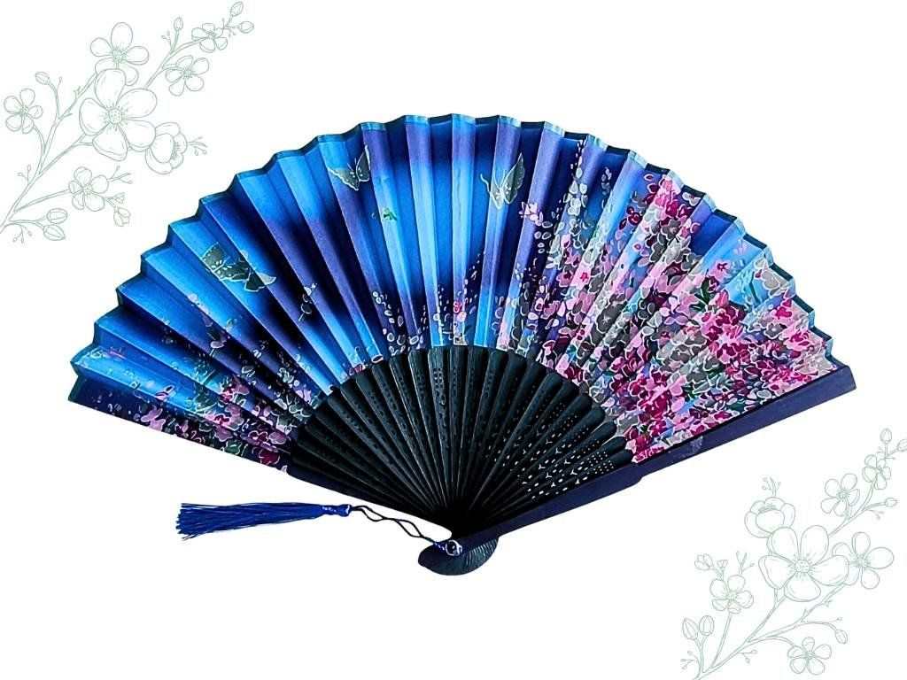 Objevte krásu, která má smysl. Tento pestře květovaný tmavě-modrý skládací vějíř je nejen stylovým doplňkem, ale i praktickým pomocníkem během horkých dnů. Praktické skládací provedení s čepelemi z přírodního bambusu a ozdobným střapcem podtrhne každý outfit – ať už se chystáte na letní procházku, dovolenou, slavnostní událost nebo romantický piknik pod širým nebem.