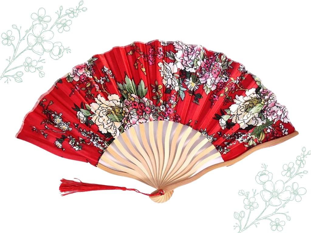 Vějíř skládací Wave Flowers / červený